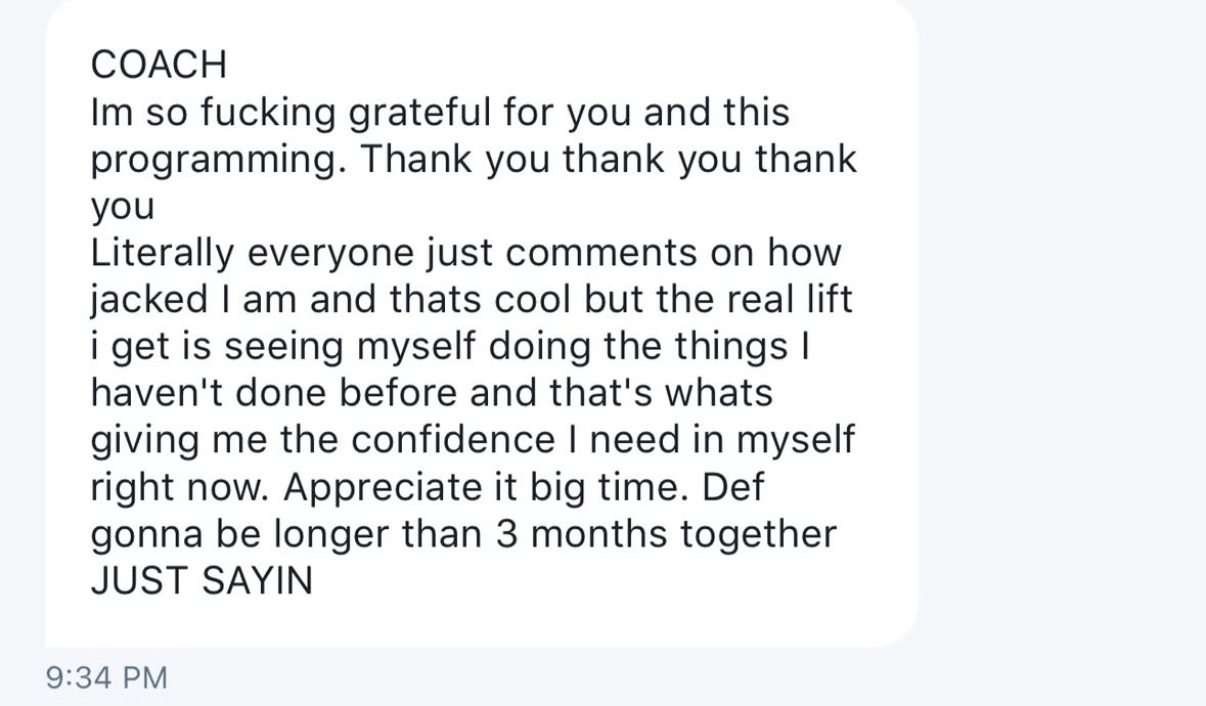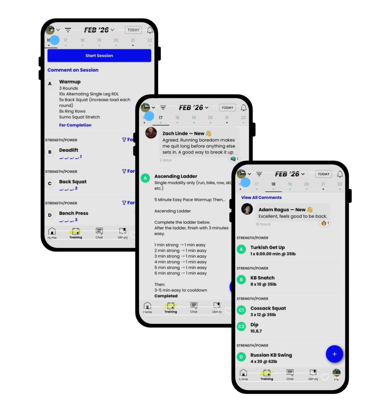 High level, fully individualized coaching built around your goals, schedule, equipment, and work & life demands.